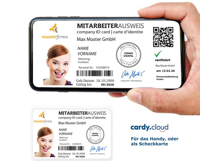 Mitarbeiterausweise für das Handy oder als Scheckkarte sofort selbst erstellen